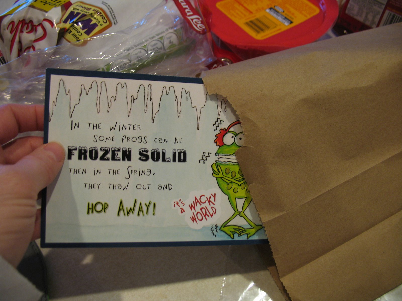 So what exactly are the Kids Lunch Box Cards? They’re cards in various school-aged themes like riddles, gross facts and weird laws. Some, like the riddles cards, have a scratch-off section to hide the answer! The cards are durable enough to withstand a lunchbox and even meet the requirements to be used as actual postcards through the postal service.