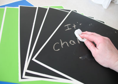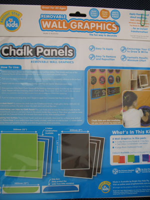 The panels work like regular chalkboards and clean easily with a damp cloth followed by a dry one.  My only complaint is that simply by the nature of what they are, chalkboard panels, they don’t have anything to catch chalk dust.  I guess if they’re in a designated play area where they are being used like a regular chalk board, you just plan on vacuuming underneath them.Regardless, I think they’re pretty cool and a fun wall feature that is not permanently affixed.  Bright Star Kids has several other themes of wall graphics for people who are creatively decorating a child’s room.  In addition, they have various other labeling options.