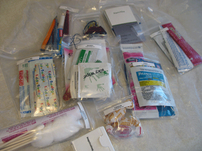 Honestly, you may say to yourself, “I can just make that myself.” What makes this unique is that all the samples are individually packaged like you would find in a first aid kit. Everything from the pain killers to the toothpicks are wrapped separately so they remain sterile while also being portable. If you purchased all these individual packets at your local discount store, it would probably surpass the price of ordering one from BagsInABag. Sure, you can skimp and not add all the same items, but that’s what makes BagsInABag special… it contains all those extra items that you wouldn’t think to carry around.