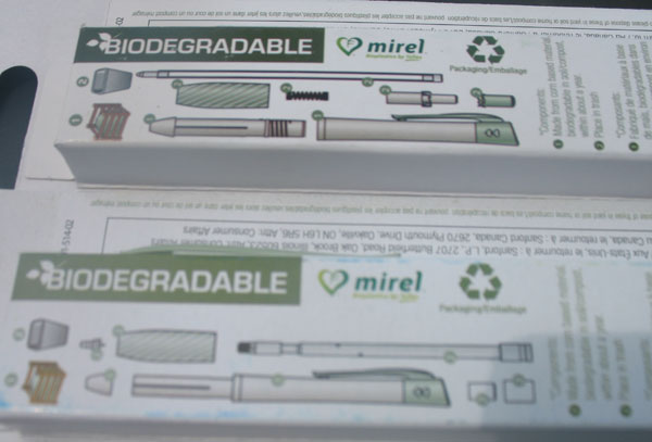 If these were lousy writing utensils, I might have a different attitude. However, they’re really nice. So in the interest of being environmentally correct, I’ll use these and when we’re no longer able to use them, the kids and I will go bury them in the backyard.