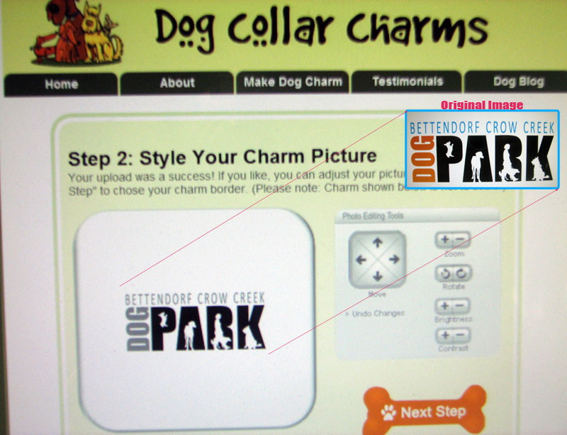 Our second place was the Bettendorf dog park… boy was it crowded and hot. There were so many dogs to pick from but we decided on a beautiful 19 month old bulldog/Shar-Pei mix named Dolly with a unique brindle coloring. Dolly was a true doll. She came right up to us and gave us huge licks. As the boys got covered with licks, I talked with her owner John and his friend. They asked about the durability of the charms and whether it would fade easily. He liked the charms and asked about other options for pictures or if he could put a number on the charm. I explained some of the process then gave him a nice flier that came with the Dog Collar Charms so he could read more about it personally. I asked John if I could give Dolly one of the dog charms and you could see the joy on his face when he called Dolly over. She sat so pretty as we finally got the charm on her collar. She was so excited. Having my iPad with me I showed John the website and he was impressed with the colors and ease of the site. On the other hand just as the first owner (Chris) had said they would not want to pay the $24.95, John said more like $10.00 for one. I appreciate the honesty of the dog owners feedback, and time they took to talk about the charms and the questions they had.