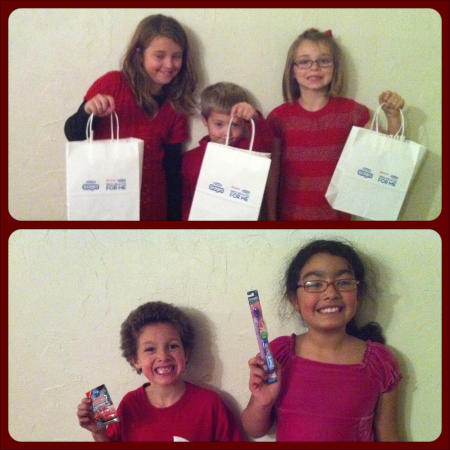 The kids at the party were all smiles as they dug through the bags and found all the cool new stuff. One of my favorite parts of this project was seeing how excited the kids were about getting something that adults might see as mundane. We were participating in other activities but later on, I caught one of the kids riffling back into her bag to revisit the loot! I’m guessing these parents didn’t realize they could make the process of getting new everyday stuff (like toothpaste, toothbrushes, flosser and rinse) more exciting and get the kids more amped up about using it!