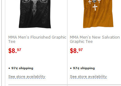After a few more unsuccessful attempts to purchase something, I went back through the available MMA Elite apparel items and put them ALL of them in my basket. Only one shirt didn’t get a red flag.
