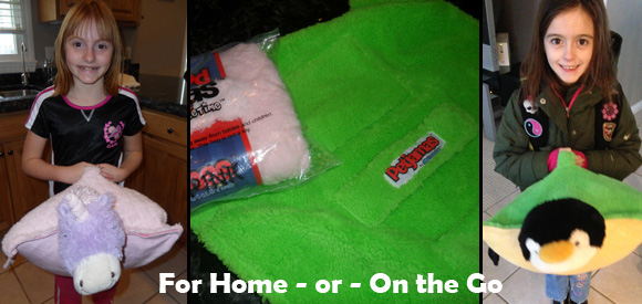 I first discovered PetJamas at the Chicago Toy & Game Fair (ChiTaG). My daughters thought they were the cutest thing. As the name implies, they are pajamas for your pet. Not your pet, pet. Your Pillow Pet. Now, you’re probably asking yourself. WHY does a Pillow Pet need pajamas? My answer, why not? Having toys that are multi-functional is great. Having a pillow that doubles as a stuffed animal means one less thing you have to take with you when you travel. (And if you’re traveling over the holidays, that’s pretty important!) Being able to dress said multi-purpose pillow adds another layer of enjoyment for the child. As a parent, all that runs through my head is “Well, when your child is sick, it’s easier to wash a pillow case (or pillow pajamas) than it is to try to launder the entire pillow.” When I asked my girls their thoughts, Miss M said she didn’t want her pillow pet to be naked and Miss K said her pillow pet needed pajamas “So it could get a good night’s sleep and be comfy.” With a price tag of under $10, these make a great gift for the pillowy-pet in your family. They include holes where the Velcro straps can feed through as well as a handle for easy carrying! They are great for at home or for on the go!