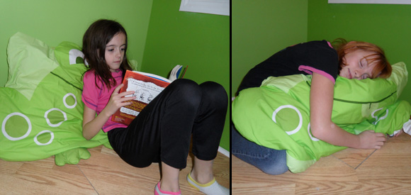 If you’re not sold on the whole Pillow Pet idea or your child doesn’t have one, you can always dress up a regular pillow with Pillowcase Friends by CompanyKids. The Pillowcase Friend that we received was large enough to accommodate a adult-sized pillow. I put a queen sized pillow in it and had plenty of room to spare. These are a great addition to a playroom to give the kids a chance to relax, read or get comfy while playing their video games. They also make a great addition to a themed-room! With a price tag of around $15, you can’t go wrong.