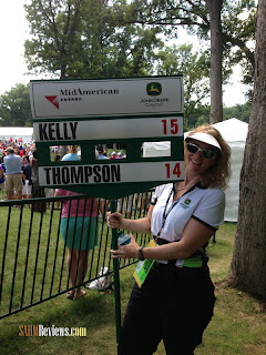 Everyone knows the phrase “The grass isn’t always greener on the other side.” This past Sunday, thanks to the PricelessGolf program reserved for MasterCard holders, I discovered that the grass IS greener on the other side. I’m not saying that in my spoiled-brat-I-want-what-she-has voice. I mean it literally. I know because I stood on both sides of the proverbial fence. Stick with me here and by the time I’m done, I’m certain you’ll agree. I have proof. This past weekend was the John Deere Golf Classic and I was fortunate enough to be able to take my dad on the inside of ropes as an Honorary Observer. In a nutshell, it meant that we would be standing and walking inside the ropes where the PGA golfers, caddies and scorers are. But it started well before we even arrived… A week or so beforehand, I received documentation in the mail that included a VIP parking pass, admission ticket and instructions. A separate package was sent to each of us that included special shirts that we were told to wear for the event. I figured it was just a regular (really cute) event shirt but once I arrived, I realized Honorary Observers were the ONLY ones with that type of shirt.