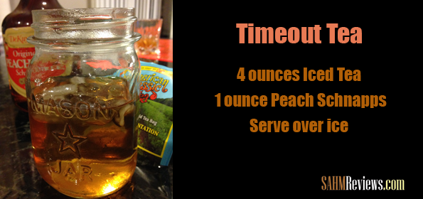 When I first called and invited my friend to come over and was explaining my idea for making drinks, I said “I want one called ‘Timeout’ something.” She happened to be drinking a Peach Tea Snapple and immediately responded with “Timeout Tea!” and proceeded to tell me what it should include. Iced Tea and Peach Schnapps. After I hung up with her, I did some brainstorming and came up with a few others.