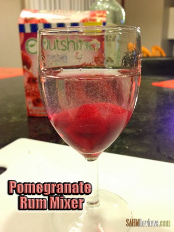 I happened to have four different boxes in the freezer and looked through each to figure out which would be best with the beverages I had on hand. The pomegranate fruit bars sounded best so I decided to give those a shot. The first thing I discovered is that the fruit cubes looked very elegant in the glasses! If you’re one that likes to entertain, having a selection of Outshine Fruit Bars in your bar freezer will liven up your drinks. Think of all the possible combinations!