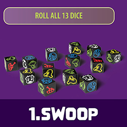 Swoop, Scoop, and Score: Roll 13 custom dice, collect specimens, dodge enemy Tanks, and gather enough Death Rays to survive Earth’s puny defenses.