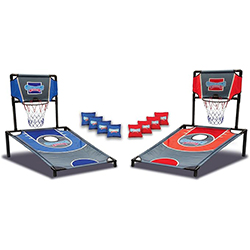 CORNHOLE SHOOTOUT – has 2 games in 1. The thrill of basketball meets cornhole with this deluxe set, perfect for enthusiasts and athletes alike. Bring the excitement of the court to your backyard gatherings, ensuring endless fun and a competitive spirit. Double the fun when Basketball meets cornhole. Simply toss the bean bag and shoot your shot by making it though the hoop and the hole! Great tailgating for men, women, teens and kids! Experience outdoor action like never before with our top-tier cornhole board set. TOOL FREE SETUP: This hassle-free design means more time playing and less time preparing, making it ideal for spontaneous fun at parties, tailgates, or family gatherings. GAME SET INCLUDES: 2 Boards, 4 Blue Bean Bags, 4 Red Bean Bags. 1 Carry Case. FAMILY GAME: Indoor & outdoor play. Tailgating, beach, party, yard fun. Games for men, women, teens & kids.
