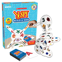 The latest expansion and innovation of its popular I SPY line of games, produced under license from Scholastic Entertainment, I SPY Build &Seek is the exciting new game combines the classic seek-and-find fun of I SPY with a game board that is uniquely constructed and shared by players each time it’s played. I SPY Build & Seek continues the tradition of players using their observation skills and memory abilities, but in this version, players first construct the game board. The traditional looking I SPY illustrated disks are double-sided print on thick cardboard with various slots so that the disks can slide together to form a geometric landscape. The construction of the game is different every time it’s played. Once the board is built, players take turns drawing a challenge card featuring an I SPY clue. Everyone then plays at once by frantically searching the structure of I SPY discs. During the search process, only the player who revealed the clue is allowed to turn or flip the entire structure once during the search process. This twist may provide a fresh look for some, but confuse others, as everyone looks for the answer.