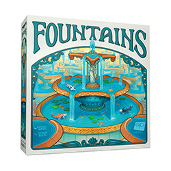 Fountains is a light strategy competitive tile-laying game where players become master Fountaineers working to build a magnificent fountain in the city of Florimelle.